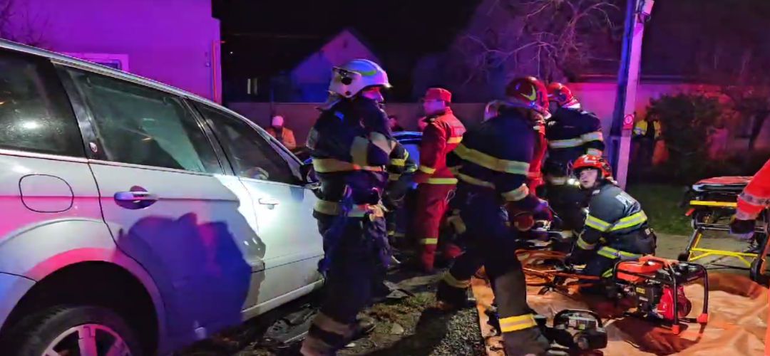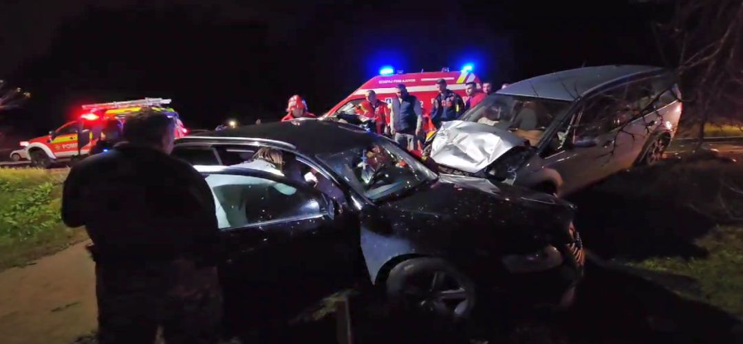 TIMISOARA. Accident de circulatie, miercuri seara, langa Timisoara, la Sag. Doua masini s-au izbit puternic la iesirea spre localitatea Jebel.