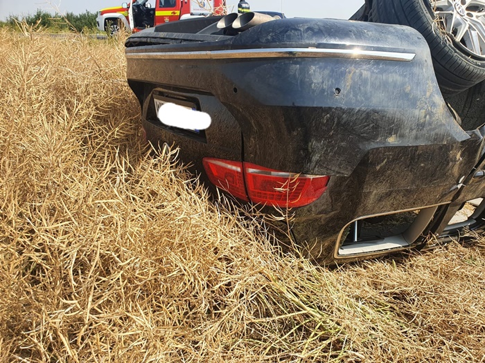 Soferul masinii rasturnate, un barbat de 55 de ani, a fost grav ranit. A fost preluat de medici si transportat de urgenta la spital in Sannicolau Mare.