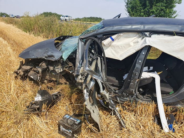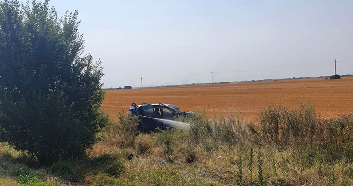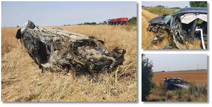 TIMISOARA. Grav accident de circulatie, joi dimineata, pe un drum din Timis. Doua masini s-au izbit violent, iar una dintre ele s-a rasturnat pe marginea soselei, in apropiere de Saravale.
