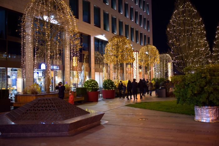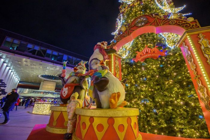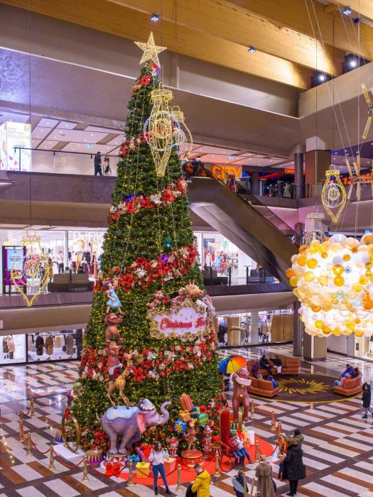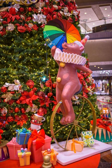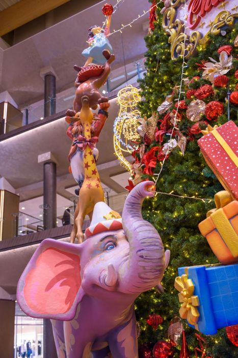 Trei brazi de Crăciun, cu înălţimi de până la 15 metri, au fost amplasaţi în ansamblul mixt (în Atrium, zona Intersport şi în parc), fiecare elegant ornat cu decoraţiuni care amintesc de lumea colorată şi fabuloasă a circului. Ursuleţi acrobaţi, pinguini şi alte animăluţe care fac demonstraţii de echilibristică, arlechini haioşi, munţi de cadouri, steluţe aurii, ghirlande şi globuri strălucitoare, toate te vor încânta în timpul petrecut în căutarea darurilor.