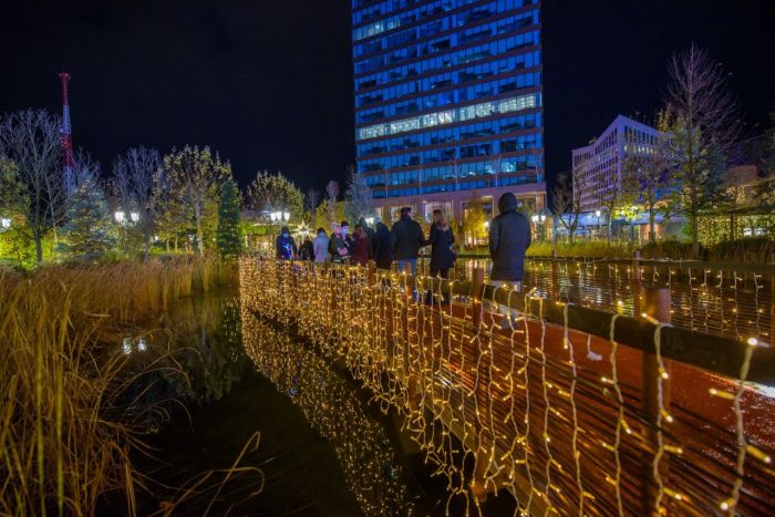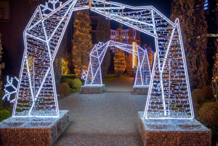 Iulius Gardens s-a transformat şi el într-un tărâm feeric, de poveste. Zeci de mii de beculeţe de Crăciun, sub formă de perdele de lumini, sclipesc în întregul ansamblu. Plimbările prin parc sunt deosebit de plăcute datorită arcadelor luminoase de pe aleile principale, dar şi zecilor de arbori şi arbuşti îmbrăcaţi în beculeţe.