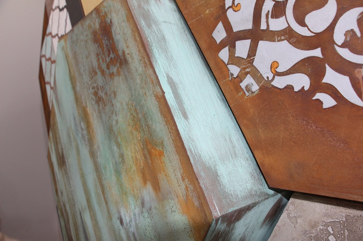 ‘Produsele au aceeasi reteta si, mai mult decat atat, se pot aplica una peste cealalta, fara a avea reactii adverse. Sunt produse unicat, care nu se gasesc la alti furnizori, cum ar fi IRONic, cu rugina – o vopsea care are in compozitie o pilitura metalica, ce oxideaza in compozitie cu o substanta antichizanta – este o rugina controlata, ca sa-i zic asa. La fel, mai avem o vopsea cu pilitura de cupru care impreuna cu un lichid antichizant da un efect de cupru oxidat. Un alt produs unicat ar fi Calcecruda cu care se pot crea diferite forme si texturi. Este pe baza de lut si lasa posibilitatea sa se lucreze in relief’, a spus Octavian Streie, reprezentant al Benjamin Moore si Novacolor.