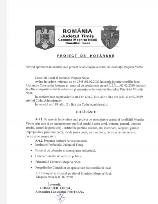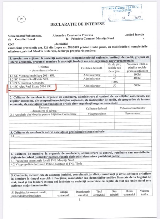 După cum știți, consilierul local Alexandru Proteasa – preşedintele PNL Moşnita Nouă – este secretarul Comisiei de Urbanism a Consiliului Local Moșnița Nouă, dar și asociat/administrator în două firme de imobiliare: Moșnița Imobiliare SRL și Alex Real Estate 2016 SRL.