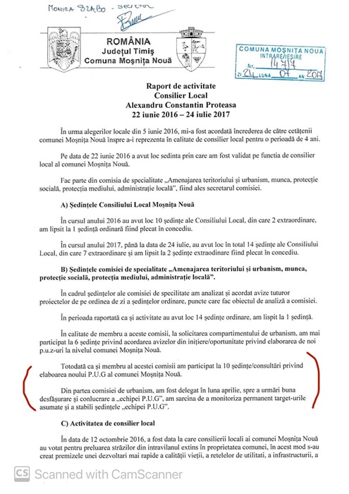 Ba mai mult, consilierul Alexandru Proteasa, conform propriului raport de activitate, este cel care se ocupă de supravegherea modului în care se lucrează la viitorul plan urbanistic al comunei Moșnița Nouă. Un conflict de interese evident pe care nimeni nu vrea să-l vadă, deși este scandalos și sfidător, în condițiile în care Proteasa este acționar în cele două firme care se ocupă de imobiliare. Pentru că, în actuala administrație a comunei, orice #sepoate. Atunci când este vorba de interesele şi buzunarele lor.