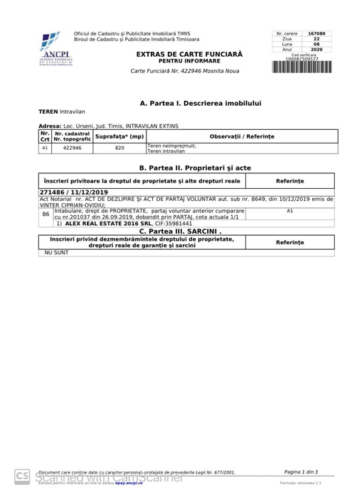 Și ce să vezi …surpriză! Unul dintre drumurile care urmează să fie asfaltate trece exact prin fața terenului de 820 metri pătrați din CF 422946 si a terenului de 745 metri pătrați din CF 422947, teren intravilan pentru funcțiuni complementare, după cum a fost aprobat în PUZ. Proprietara terenurilor respective, conform extraselor CF, este firma Alex Real Estate 2016 SRL, mai exact consilierul Proteasa ”pe persoană juridică”. După ce colegul său de partid, primarul Bucur, a decis să treacă asfaltul pe lângă parcela colegului său Proteasa, normal că nu i-a fost greu să arunce praf în ochii moșnițenilor care înoată în noroaie că vor asfalta și alte străzi. #sepoate este de fapt mesajul arogant că orice este posibil pentru ei, nu pentru plătitorii de taxe și impozite. “Interesul comunității” este o expresie folosită în bătaie de joc, pentru că de fapt se urmăresc propriile interese şi umplerea conturilor folosindu-se de administrația locală. Și ne dovedește lucrul acesta tot consilierul local Alexandru Proteasa: în februarie 2020 a întocmit un referat prin care a propus și s-a aprobat apoi în Consiliul Local o strategie de amenajare a centrului localității Moșnița Veche pentru modernizarea clădirilor, străzilor, iluminat public, spații verzi, coșuri de gunoi. Absolut normal și de aplaudat, chiar dacă lucrurile acestea ar fi trebuit să se întâmple de mult. Însă din nou surpriză: demersul consilierului Proteasa ascunde de fapt interesul investitorului Proteasa. Asta pentru că firma sa, Alex Real Estate 2016 SRL (deja v-ați obișnuit cu ea) cumpără jumătate din cei 2.000 de metri pătrați ai terenurilor din Cărțile Funciare 420630 și 420631. Cine se va bucura de creșterea valorii terenului în urma proiectului de modernizare propus de consilierul Proteasa? Desigur, omul de afaceri Proteasa. Binențeles, pentru că #sepoate orice în comuna noastră.