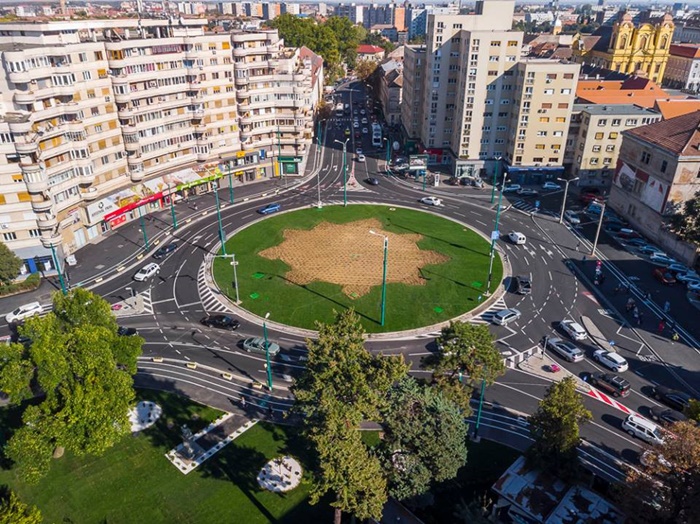 TIMISOARA. S-a schimbat infatisarea Pietei Marasti odata cu incheierea lucrarilor de amenajare a spatiului verde din rondoul aflat chiar in mijlocul sensului giratoriu. Peisagistii au facut din trandafiri harta vechii Cetati a Timisoarei, care se va dezvalui in toata splendoarea abia in primavara cand rozele vor inflori.