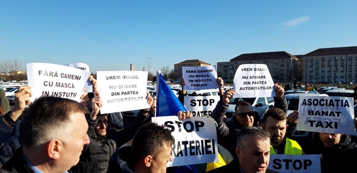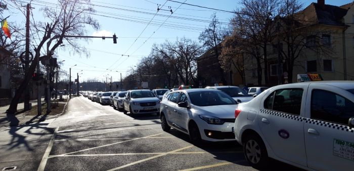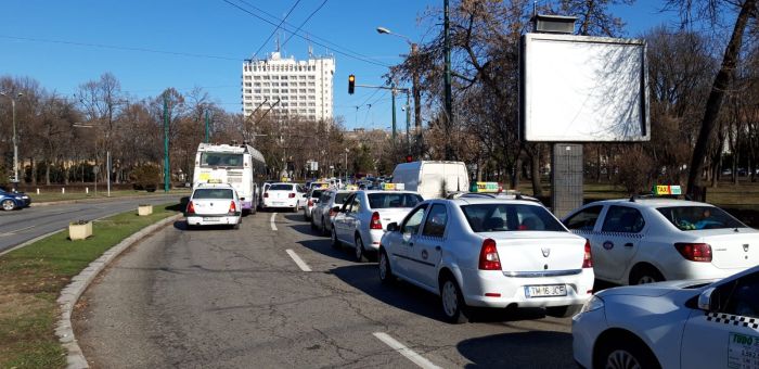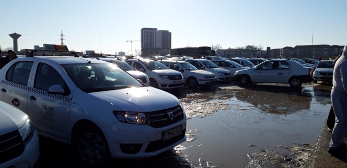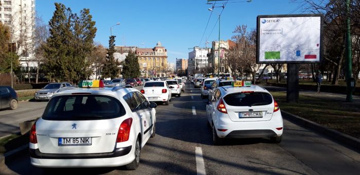 Prin protestul organizat la Timisoara, taximetristii s-au alaturat actiunilor organizate la nivelul intregii tari de catre Confederatia Operatorilor si Transportatorilor din Romania.