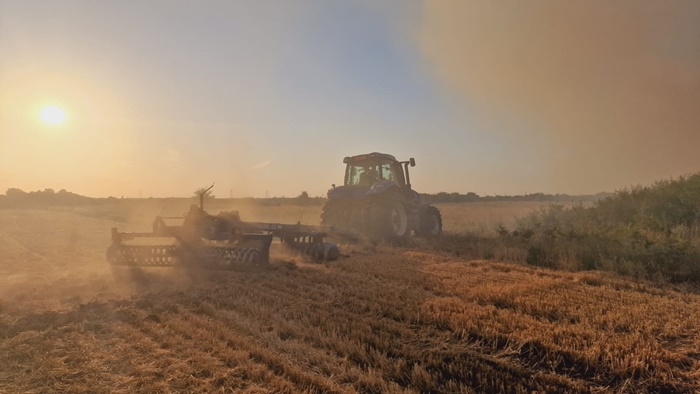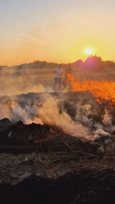 UPDATE: In sprijinul pompierilor au venit si cei de la SVSU Mosnita Noua, dar si localnicii, care au iesit cu tractoarele pe camp sa discuie, astfel incat focul sa nu se extinda.