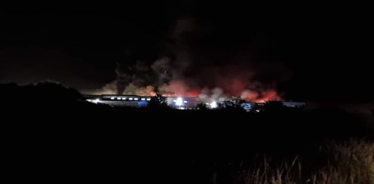 TIMISOARA. Alerta langa Timisoara, sambata seara. Un incendiu de proportii a cuprins fabrica Frigoglass din Sag.