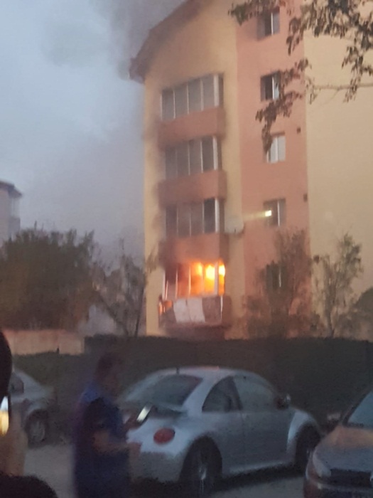 Incendiul s-a produs pe strada Mehadia din Timisoara, la etajul intai al unui bloc de locuinte. Flacarile puteau fi observate pe balcon.