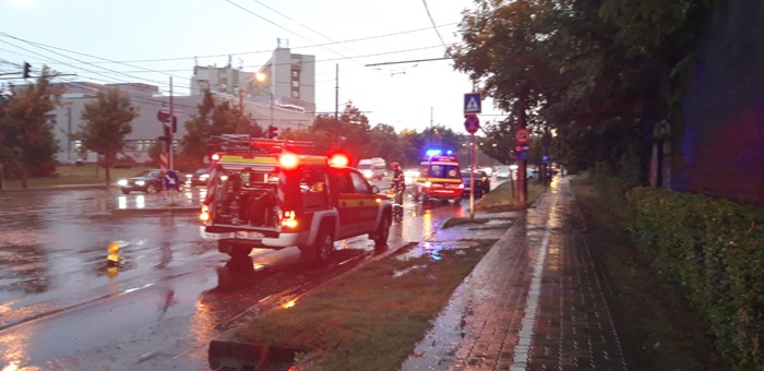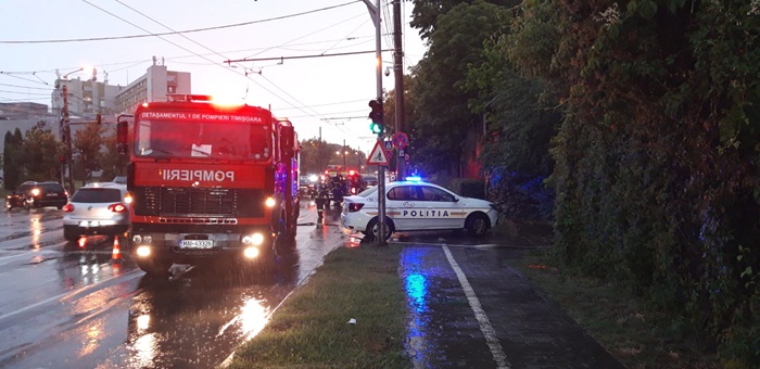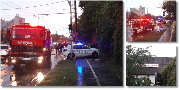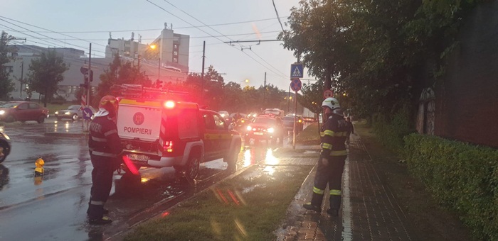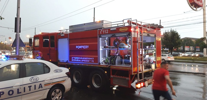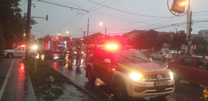 Pompierii au intervenit cu 3 autospeciale de stingere, o autospeciala de lucru la inaltime, un echipaj SMURD si 17 salvatori.