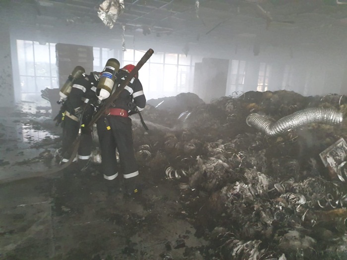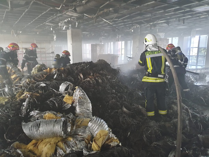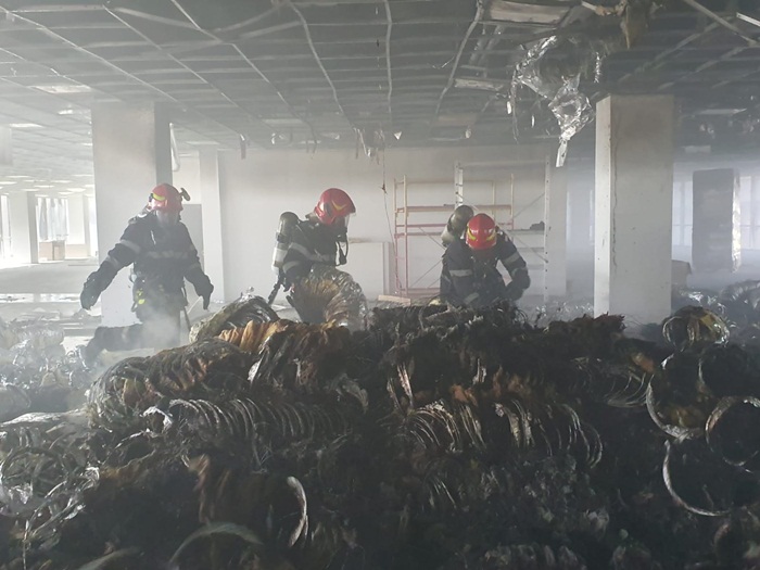 Din primele informatii, se pare ca focul a izbucnit la etajul 1 la niste materiale de constructie care se aprind usor.