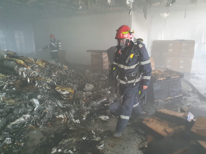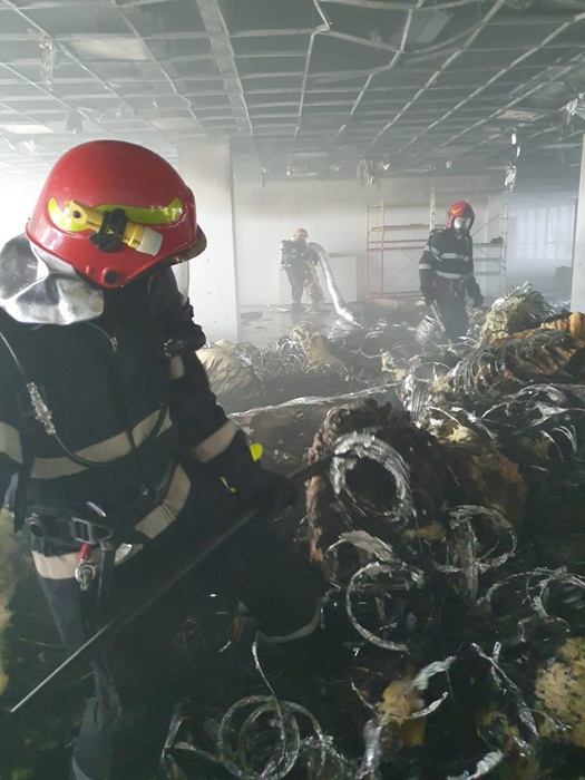 UPDATE: Incendiul a fost lichidat in jurul orei 13.00. Au ars materiale de constructie pe o suprafata de aproximativ 600 de metri patrati.