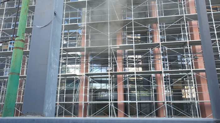 “Incendiul se manifestă la nivelul etajului 1 al cladirii de birouri in constructie, in complexul ISHO, de pe bulevardul Take Ionescu. Se intervine cu 7 autospeciale de stingere, 2 autoscari mecanice de lucru la inaltime, motosuflante si peste 40 de pompieri. S-au autoevacuat 32 de persoane din cladire, muncitori“, transmit reprezentantii ISU Timis.