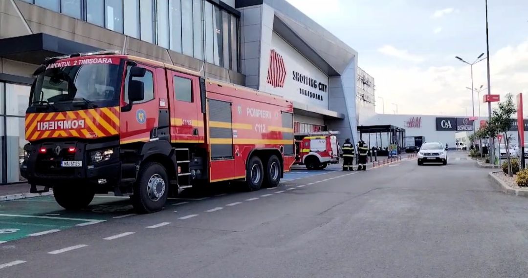 La fata locului au intervenit atat pompierii de la centrul comercial, cat si echipaje de la ambele detasamente din Timisoara.