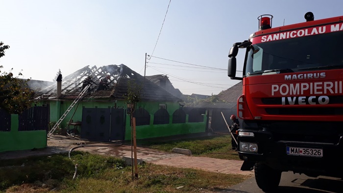O casa din Sannicolau Mare a luat foc, iar pompierii au fost chemati in ajutor. Flacarile s-au extins cu repeziciune si au cuprins atat acoperisul locuintei, cat si o magazie invecinata.