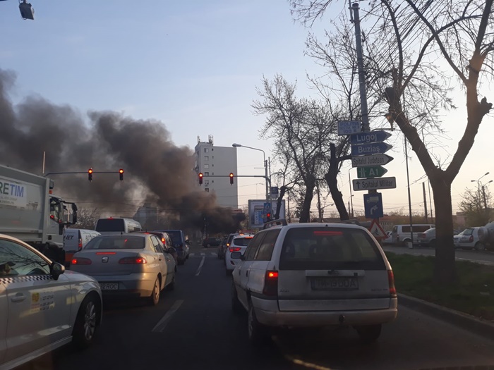 Incendiul a izbucnit in vecinatatea parcarii unui supermarket, la intersectia Sagului cu Rebreanu, iar coloana de fum putea fi vazuta de la mare distanta.