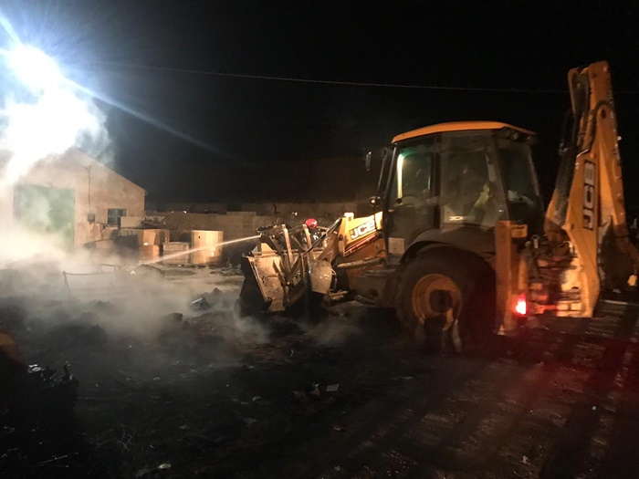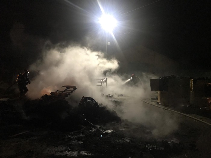 Materialele cuprinse de flacari, aproximativ 1000 kg, se aflau in curtea depozitului.