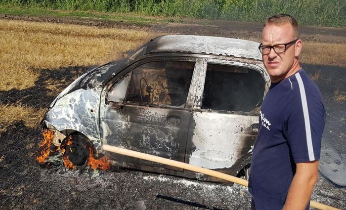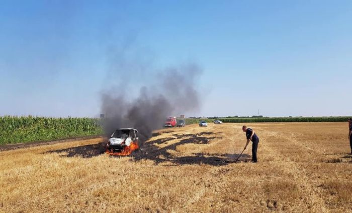 TIMISOARA. Fum si panica miercuri dimineata, in Timis. O masina a fost cuprinsa de flacari, pe un camp, iar un tractorist a fost cel care a dat alarma la numarul de urgenta 112.
