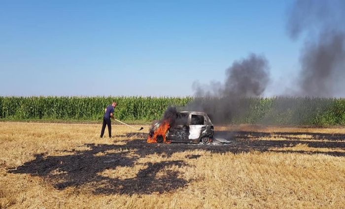 Imediat, echipajele de pompieri voluntari din Lenauheim si Sannicolau Mare s-au mobilizat si au pornit spre locul in care o masina ardea ca o torta.