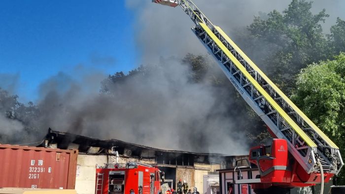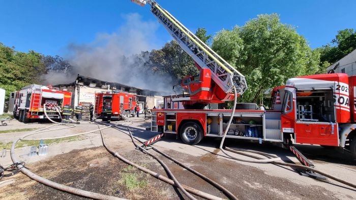 ”Am fost solicitați să intervenim pentru stingerea unui incendiu la o hală în care sunt depozitate scule, pe Calea Dorobanților din Timișoara.