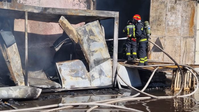 În acest moment, incendiul este localizat și nu mai există posibilități de propagare la vecinătăți. Pompierii lucrează pentru lichidarea incendiului.