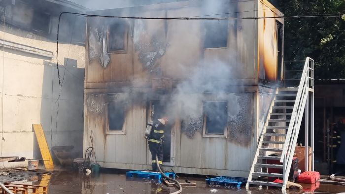 TIMISOARA. Un incendiu a izbucnit duminica la o hala de scule electrice de pe Calea Dorobantilor din Timisoara. Intreaga hala are 400 de metri patrati.