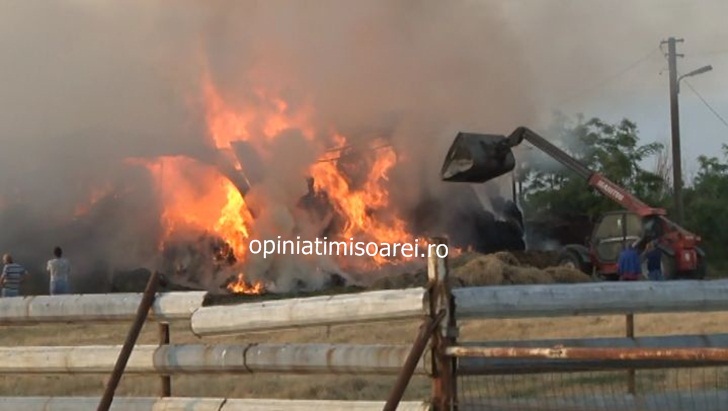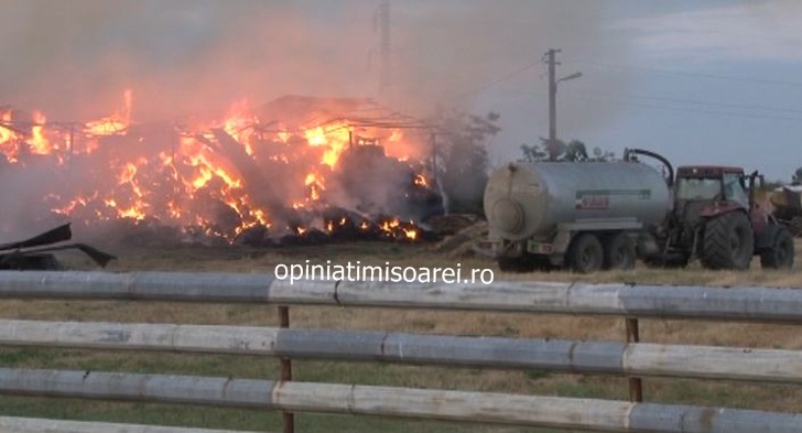 Aseara, in jurul orei 20.00, flacarile au izbucnit la balotii stivuiti, iar proprietarii au chemat in ajutor pompierii de la Sannicolau Mare.