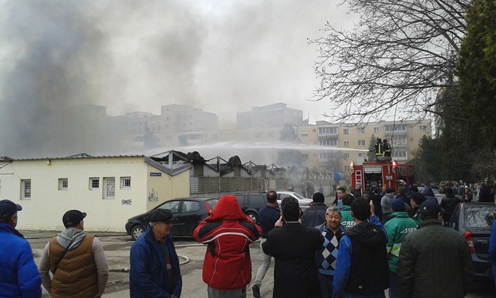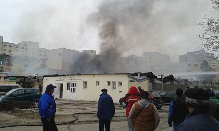 La fata locului au ajuns si pompierii cu doua masini de interventie, insa pana la lichidarea incendiului mai multe standuri s-au facut scrum.