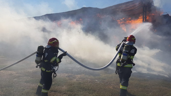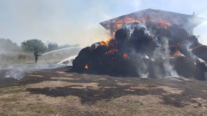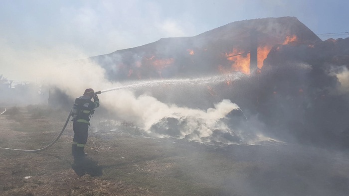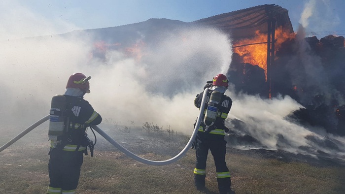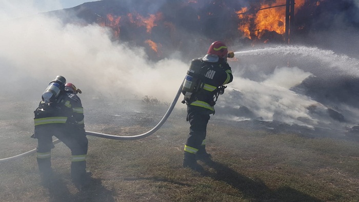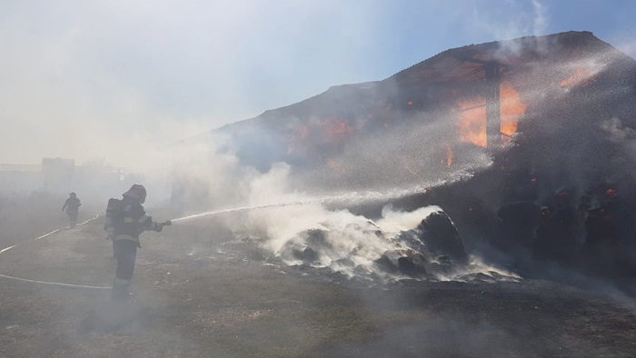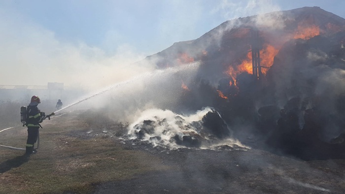 “Incendiul se manifesta cu ardere generalizată la aproximativ 1000 de baloti de paie. Se intervine pentru limitarea extinderii incendiului și lichidarea acestuia cu o autospecială de stingere și 5 pompieri“, transmit reprezentantii Inspectoratului pentru Situatii de Urgenta.