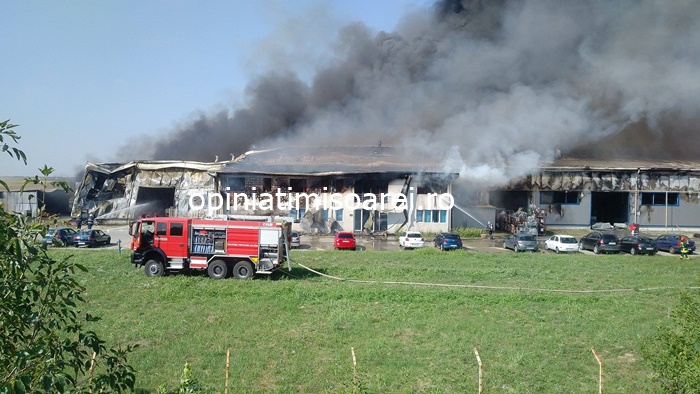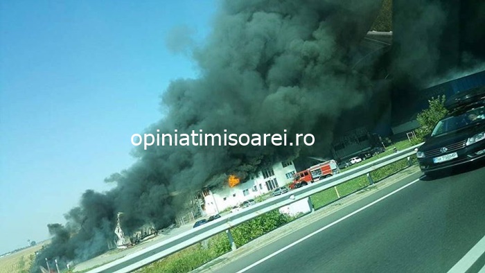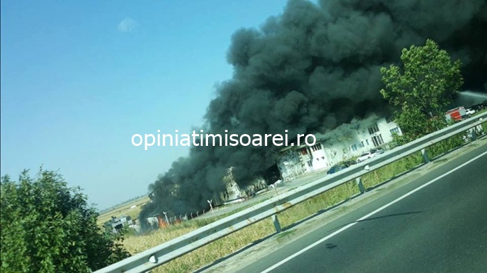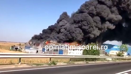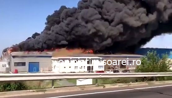 TIMISOARA. Incendiu violent langa Timisoara. O fabrica a fost cuprinsa de flacari.