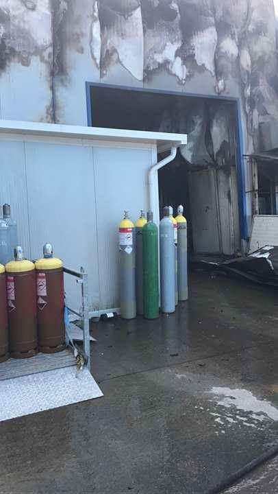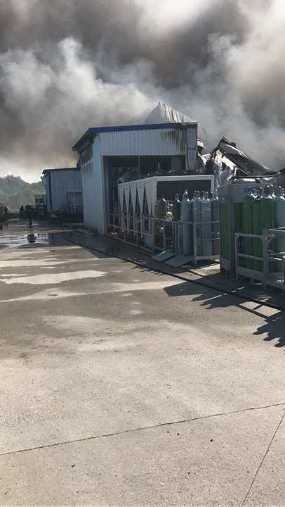 Arde o turnatorie de aluminiu in care se gasesc mai multe butelii cu gaz.