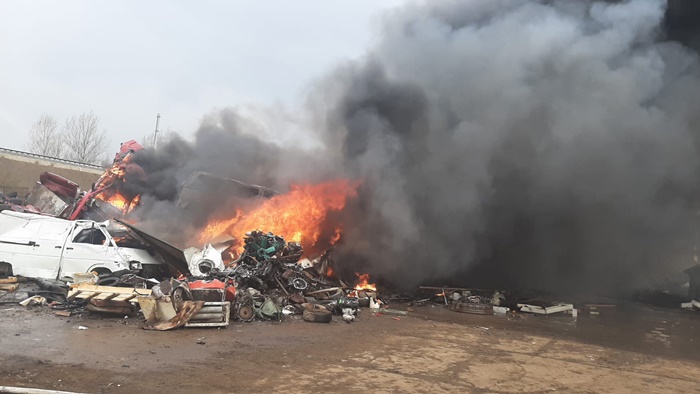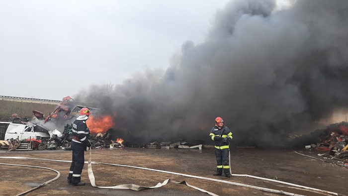 S-a dat alarma miercuri dupa amiaza dupa ce un incendiu a fost anuntat la un depozit de fier vechi de la Simeria.