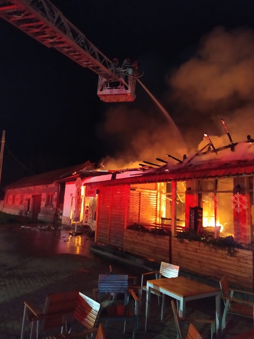 Pompierii au intervenit inainte de ora 3.00 pentru stingerea incendiului cu 4 autospeciale, cu o autoscara, si un echipaj SMURD.