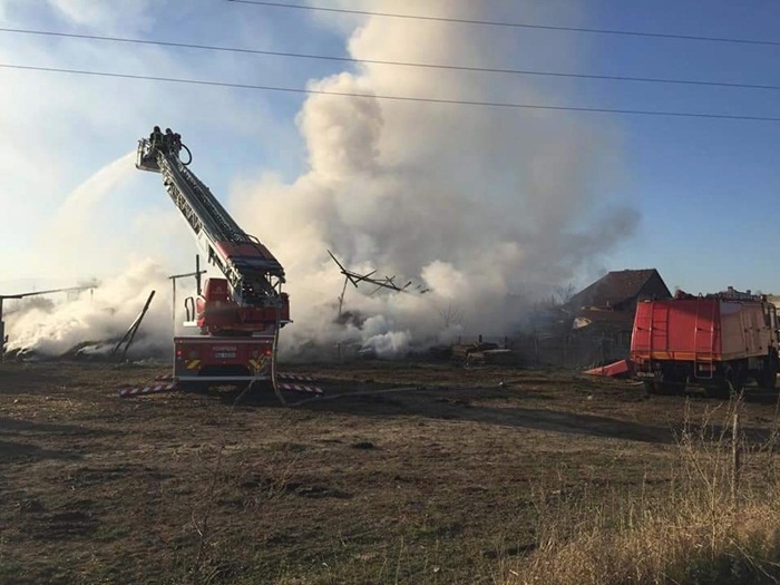 Pompierii inca lucreaza pentru stingerea flacarilor.