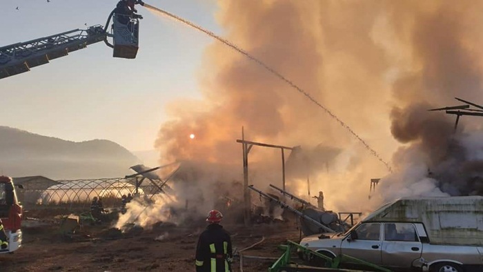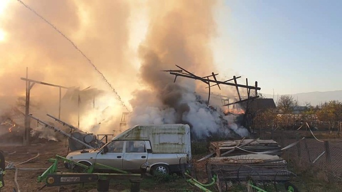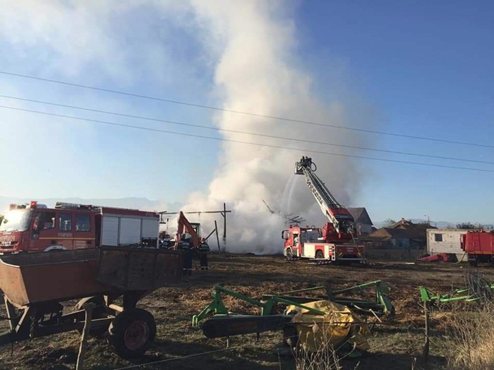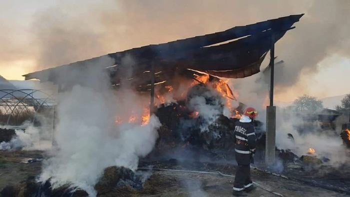 Incendiu a izbucnit la un depozit din localitatea hunedoreana Santamaria Orlea. Doua hale in care au fost depozitati baloti de paie au luat foc.