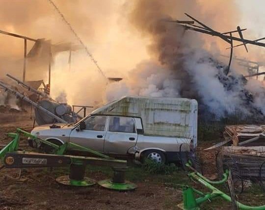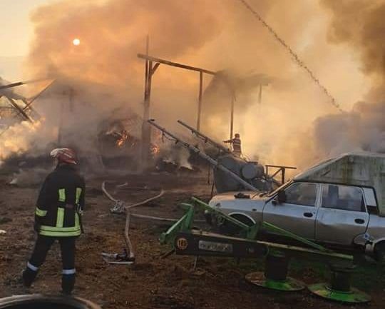 In momentul izbucnirii incendiului in interiorul constructiilor se aflau aproximativ 5000 de baloti, insa focul a ajuns si la cateva utilaje agricole.