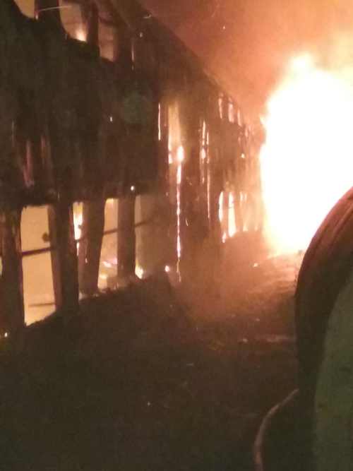 UPDATE: Flacarile au cuprins si o constructie din gara, aflata in vecinatatea liniei secundare pe care erau trase cele 3 vagoane. Acoperisul cladirii ce adaposteste un depozit CFR a ars pe o suprafata de 150 de metri, fara sa fie insa afectate si incaperile.