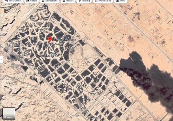 Flacarile au izbucnit la Al Sulaibiya, acolo unde se afla cel mai mare depozit de anvelope uzate din lume.