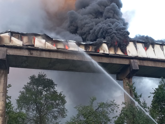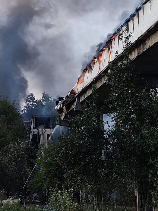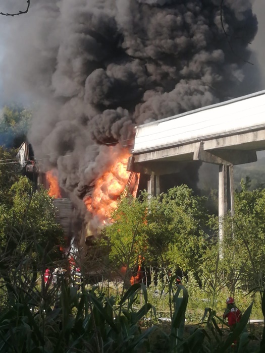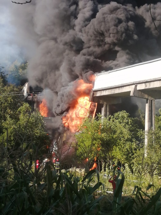 Focul a cuprins aproape 1000 de metri de banda si ameninta sa se extinda si la tronsonul cu structura de lemn, suspendat pe piloni de beton, care trecea peste mai multe case.