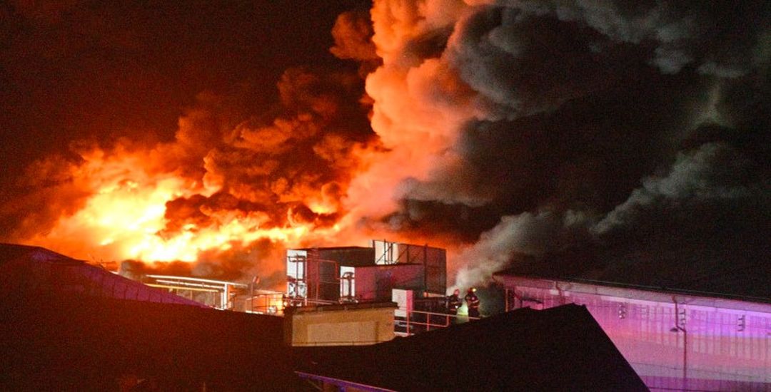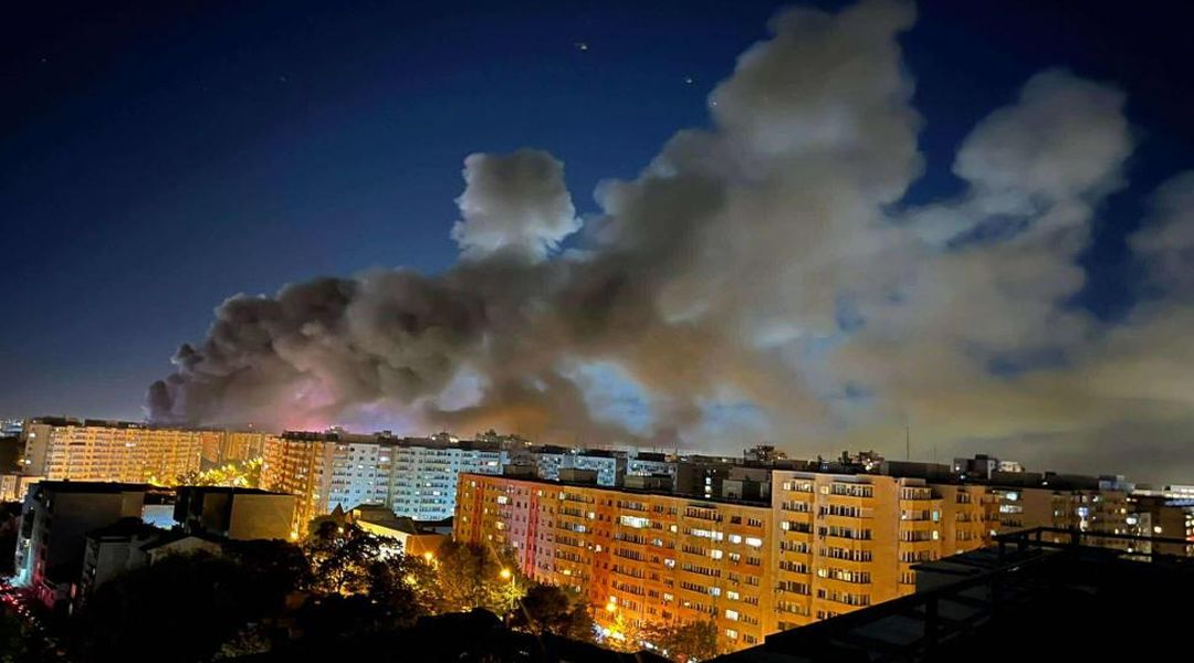 Flăcări înalte și coloană de fum vizibilă din toate colțurile orașului în București, după ce un depozit al unei fabrici din sectorul 2 a luat foc.