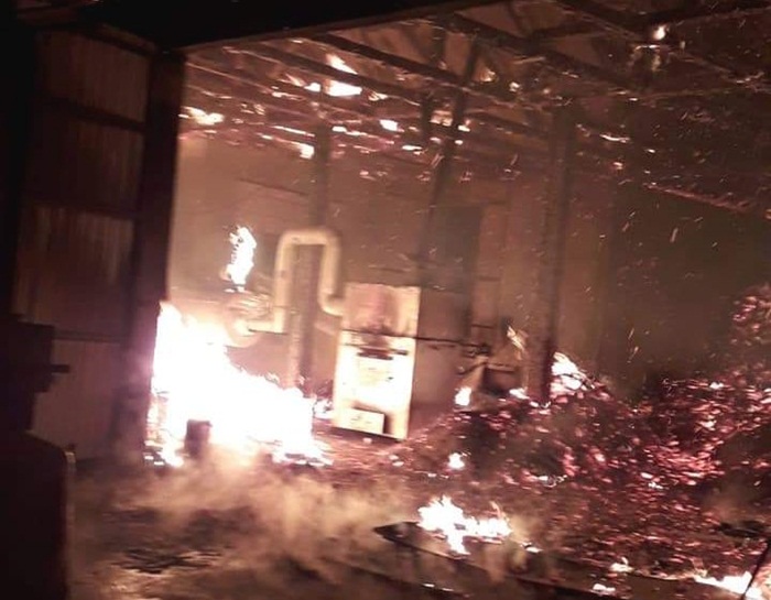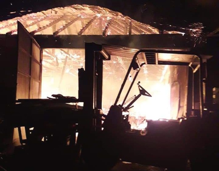 S-a dat alarma noaptea trecuta dupa ce un incendiu a izbucnit intr-un atelier de prelucrare a lemnului plin cu materie prima.