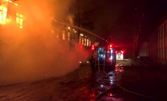 Echipaje de pompieri de la Gataia, Birda, Deta si Timisoara se lupta acum cu valvataia care, se pare, a pornit din zona de sub acoperisul de tabla.