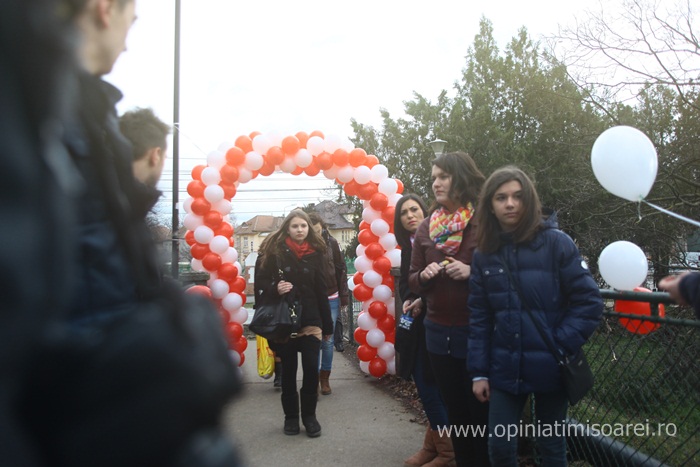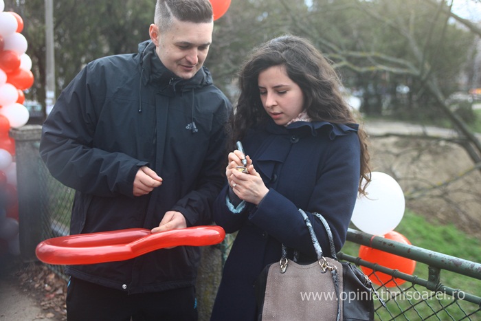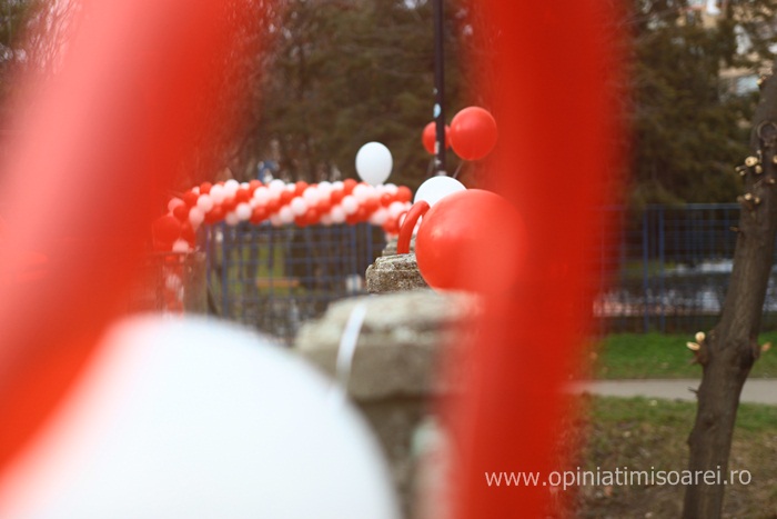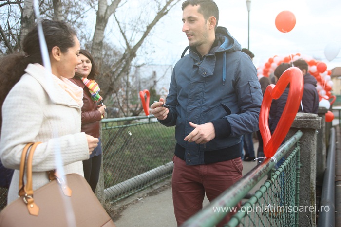 Decorul a fost unul pe masura: podul a fost impodobit cu baloane albe si mai ales rosii, rotunde sau in forma de inimioara.