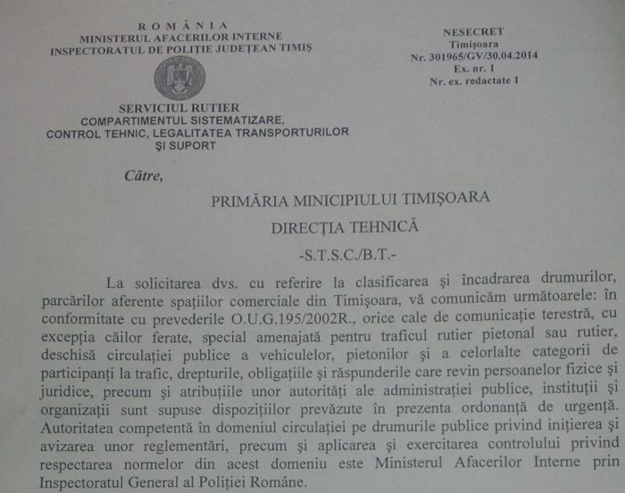 De altfel, intr-o informare trimisa de Serviciul Rutier al Inspectoratului Judetean de Politie Timis, “parcarile aferente spatiilor comerciale din Timisoara sunt supuse dispozitiilor prevazute in OUG 192/2002”. Doar Politia poate aplica insa legea.