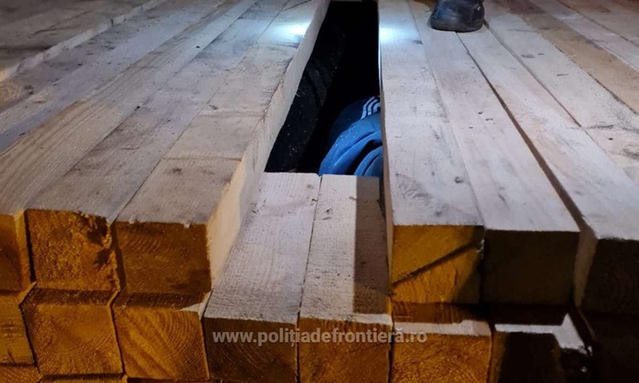 In urma verificarilor, politistii i-au gasit pe transfugi ascunsi printre profilele de lemn, dar si in locasuri special amenajate in spatele scaunelor si in locul destinat odihnei soferilor.