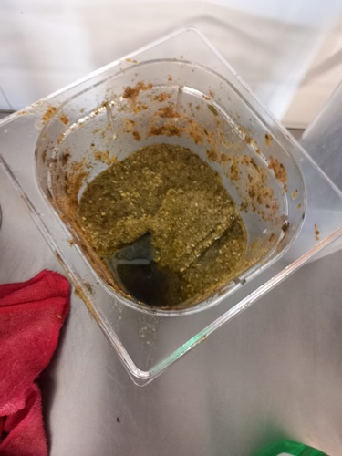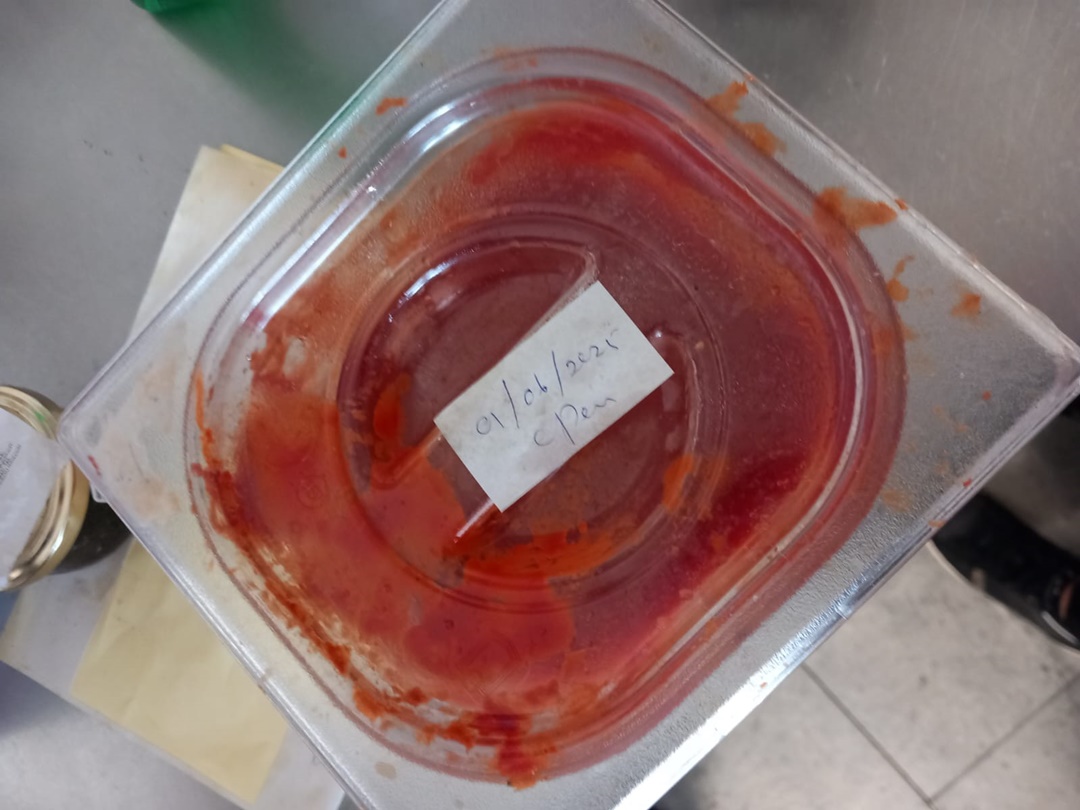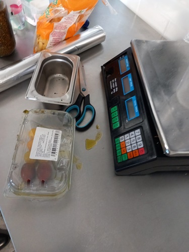 1. Întreg spațiul neigienizat corespunzător, spațiul frigorific nefuncțional, cu scurgeri de apă în interiorul acestuia, congelator neigienizat cu scurgeri sangvine din produsele animale depozitate, ustensile de lucru neprofesionale, coșuri pentru colectare deșeuri fără capac și pedală, prezența insectelor vii si moarte (muște) in blocul alimentar, spatiul de depozitare (scaune, perini, mobilier divesrs) în imadiata apropiere a blocului alimentar, produse (materii prime) lipsite in totalitate de elemente de identificare/caracterizare necesare stabilirii conformității acestora, care nu respecta condițiile de păstrare, cu data limită de consum depășită(EXPIRATE).