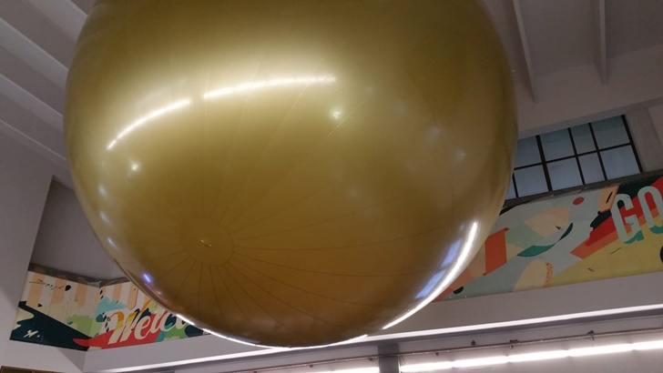 Instalatia ‘The Sun is Not Yellow, It’s Chicken’, de Raul Vasvari este un imens balon cu heliu cu un diametru de 9 metri care va pluti in holul caselor de bilete din Gara de Nord din Timisoara.