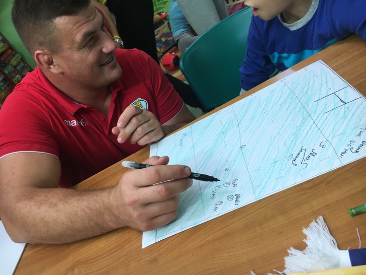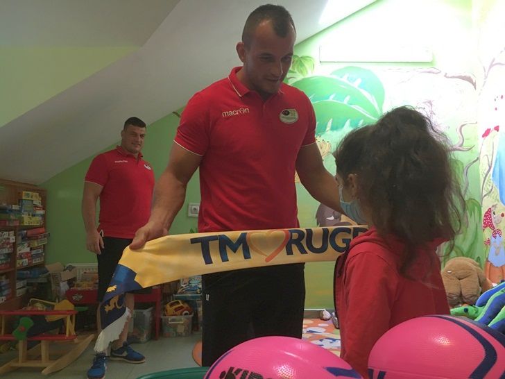 Rugbystii le-au aratat cum se dau pasele, le-au explicat regulile jocului si le-au povestit patanii de pe teren.