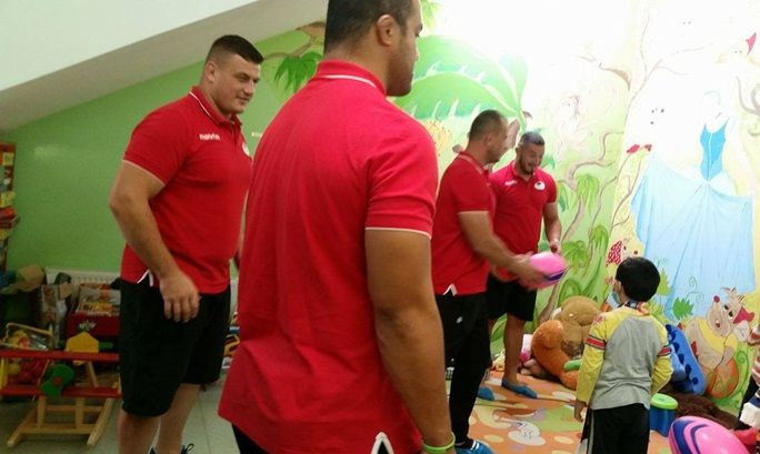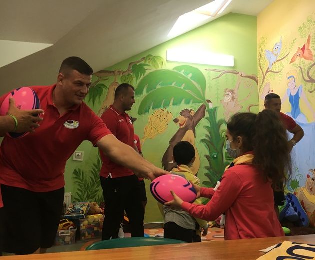 TIMISOARA. A fost veselie multa in camera de joaca de la Spitalul de Copii Louis Turcanu din Timisoara. Micutii internati acolo au avut parte de o surpriza de proportii pusa la cale de Asociatia Little People Romania si rugbistii de la clubul Timisoara Saracens. Uriasii de aur au venit sa se joace cu piticii bolnavi carora le-au adus multa bucurie si i-au facut sa mai uite de suferinta pret de cateva ore.